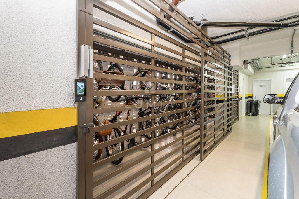 São 3 vagas de garagem cobertas sendo 01 dupla, 01 livre e uma adicional para moto, com carregador para carros elétricos.