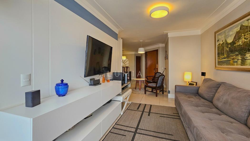 Apartamento semi-mobiliado de 121,49 m² com 3 dormitórios sendo 1 suíte com varanda no 18° andar e 2 vagas de garagem