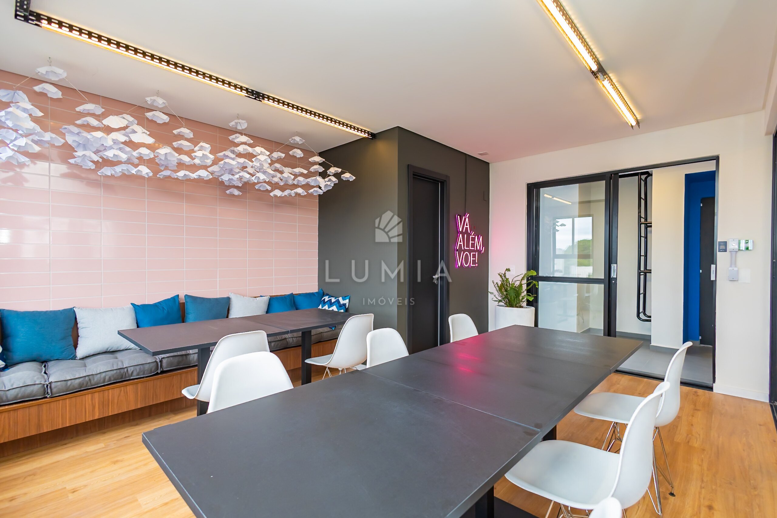 O condomínio apresenta uma gama de opções de lazer com destaque para a horta, bicicletário, coworking, gourmet interno e externo. Pensado para suprir as necessidades de suas rotinas, o Fly tem áreas comuns criativas e elegantes para todos os momentos do seu dia.