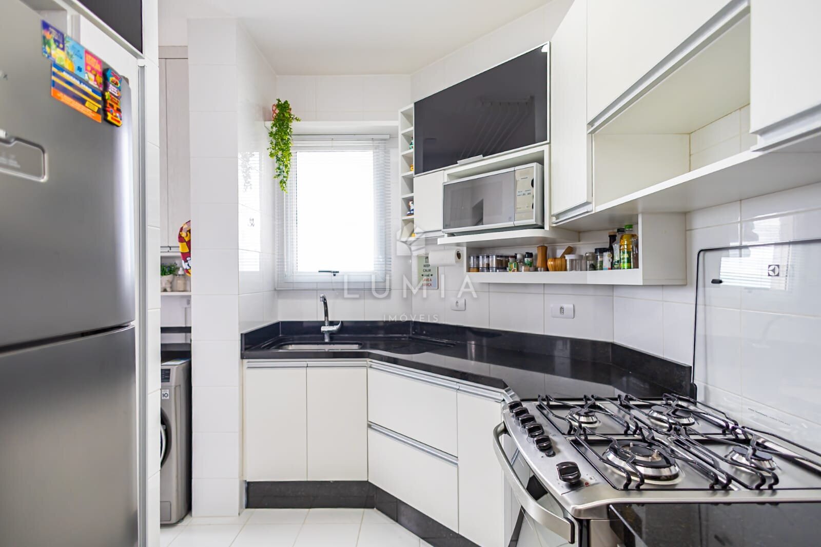 - Cozinha com armários e eletrodomésticos