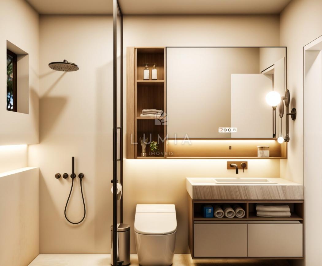 - Acabamentos de alto padrão: piso porcelanato e laminado, forro em gesso, pintura, esquadrias com veneziana, infraestrutura para ar condicionados e aquecimento a gás.