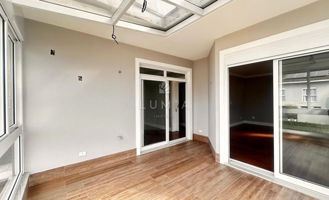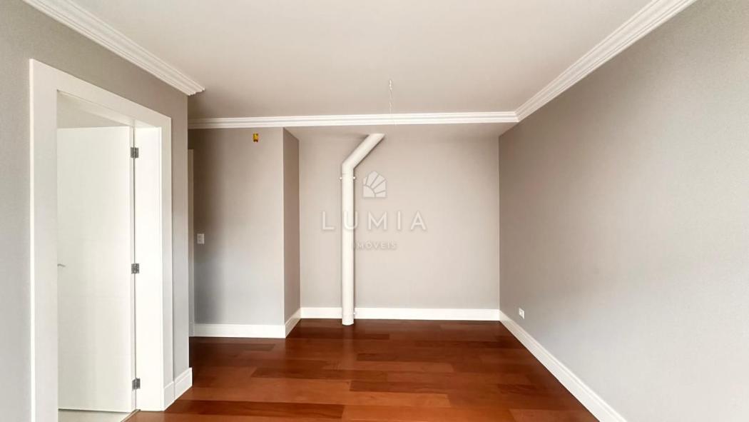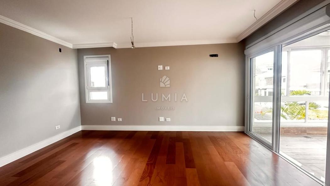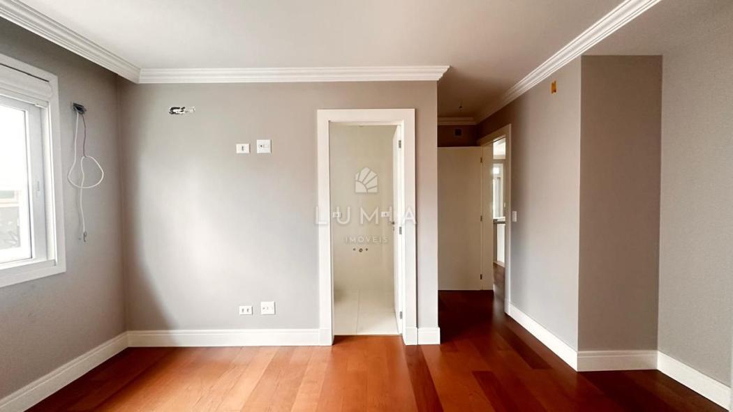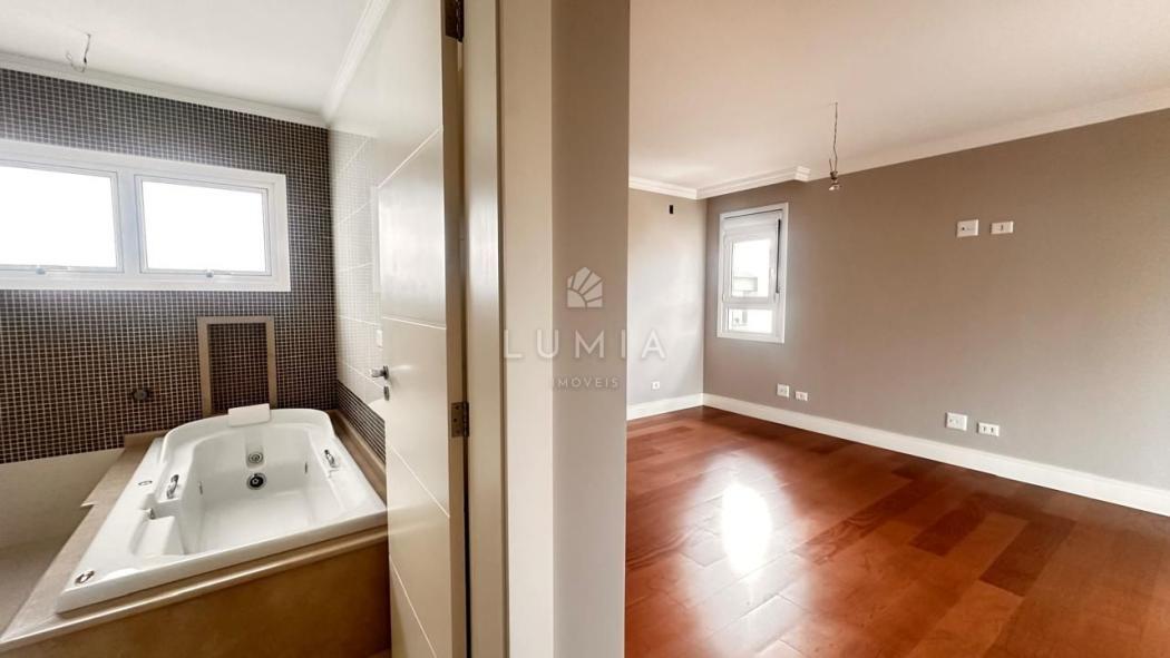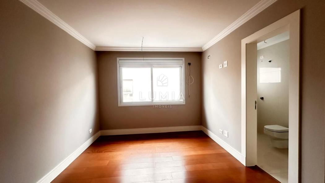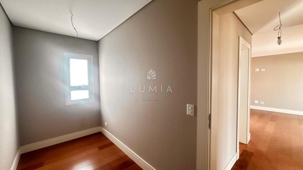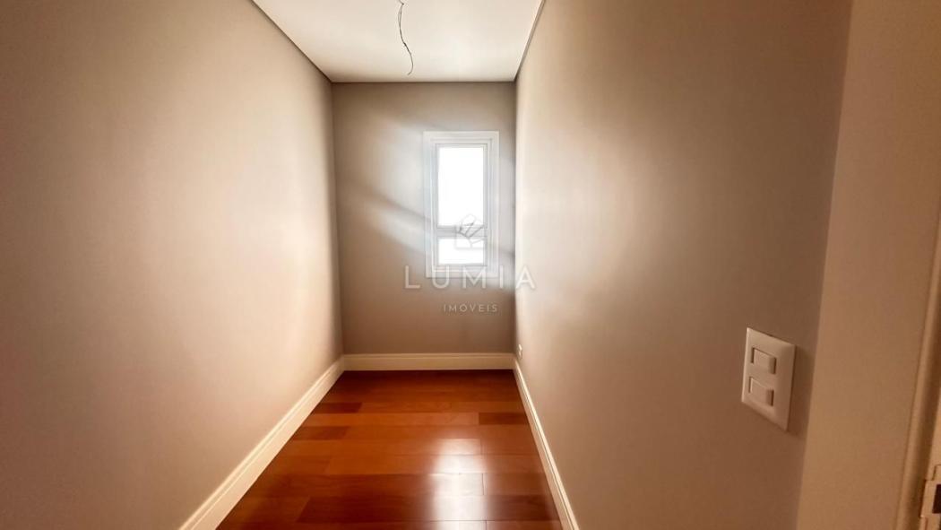 Acabamentos: Piso porcelanato nas áreas frias e piso de madeira nas áreas sociais e dormitórios. Persianas automatizadas e pontos para ar-condicionado em todos os quartos.