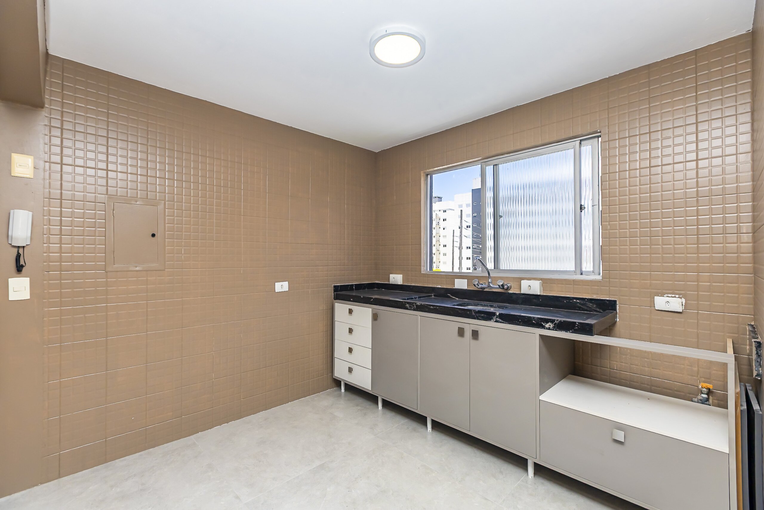 - Cozinha com armários, em conceito aberto