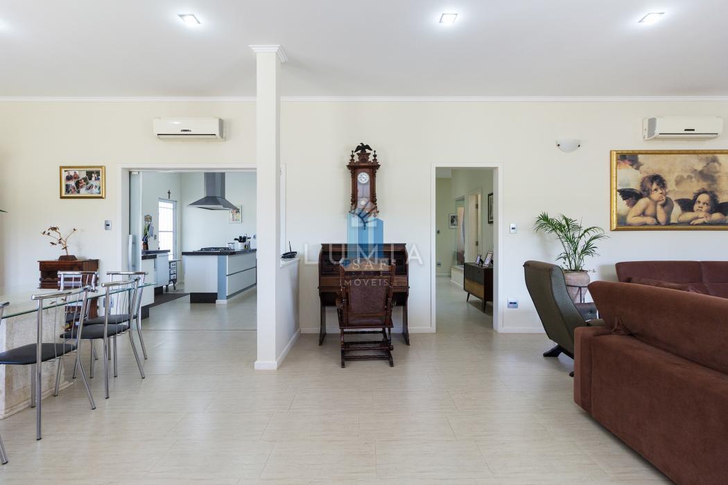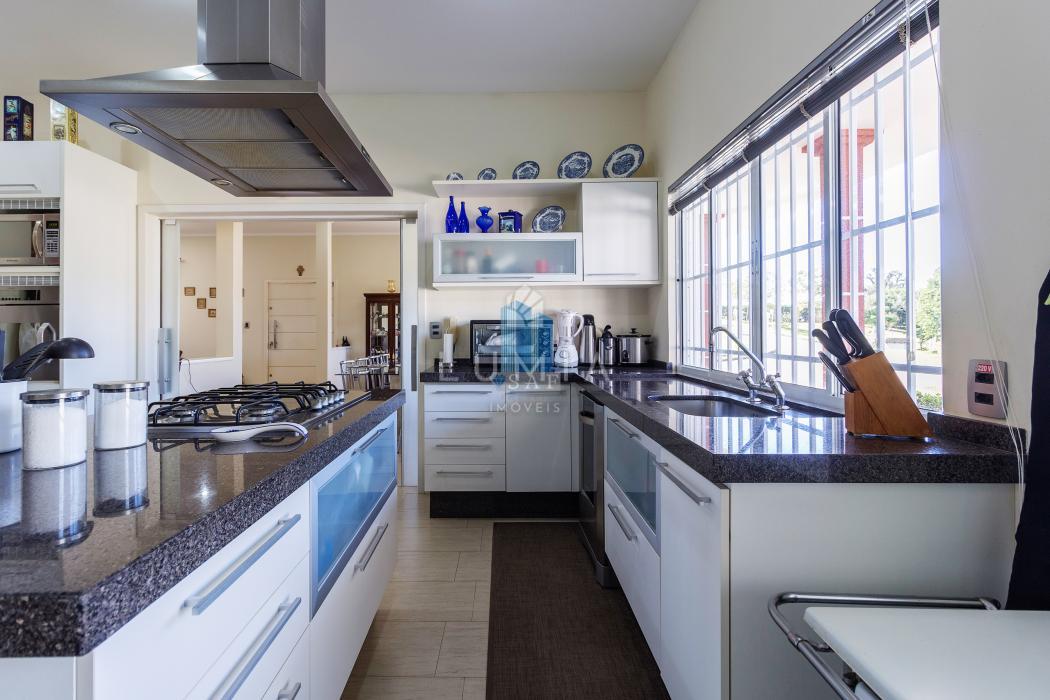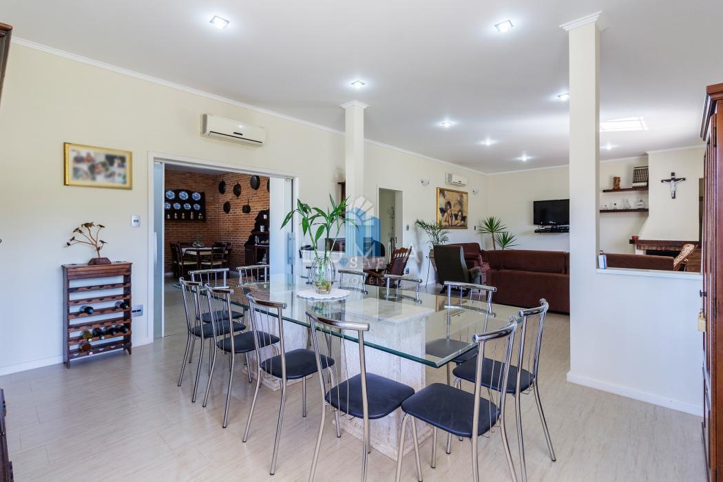 Casa principal de alvenaria com 330 m², composta por 4 dormitórios, sendo 2 suítes, uma cozinha ampla e equipada, e uma espaçosa sala de estar com lareira, oferecendo conforto e aconchego.
