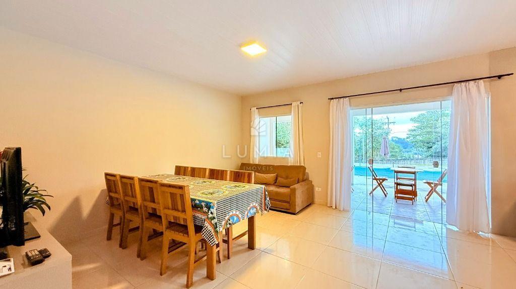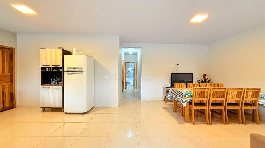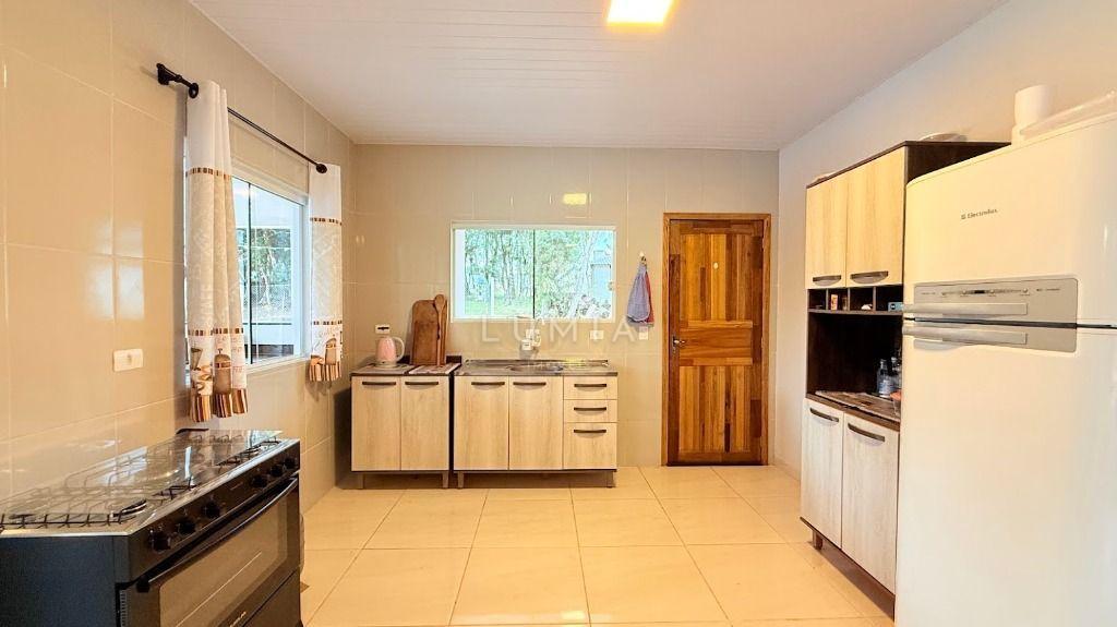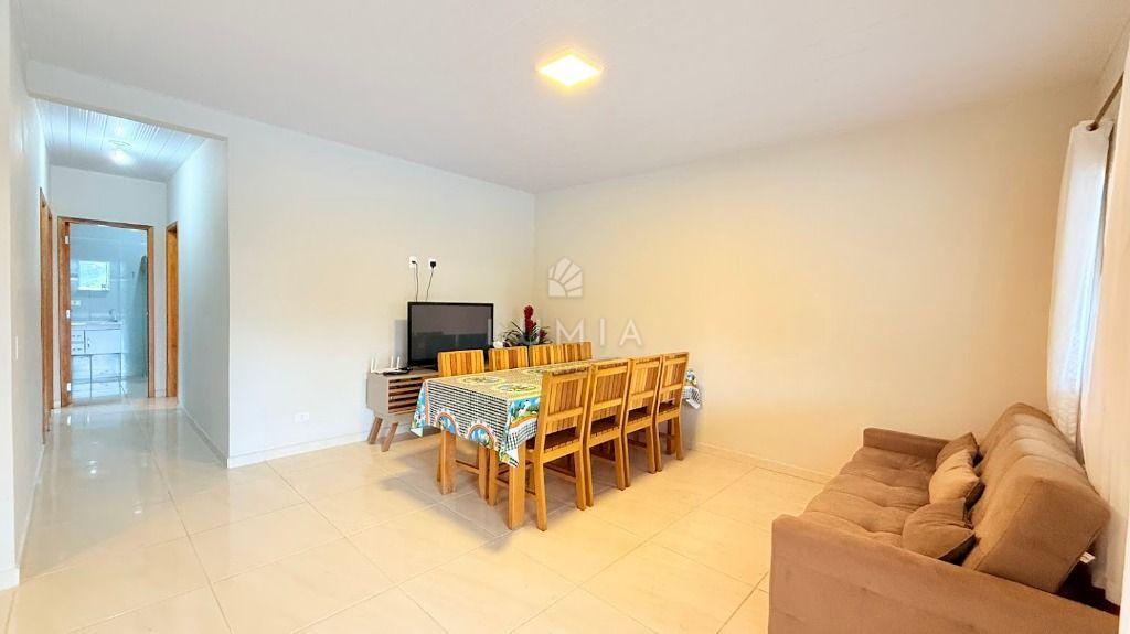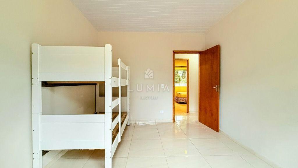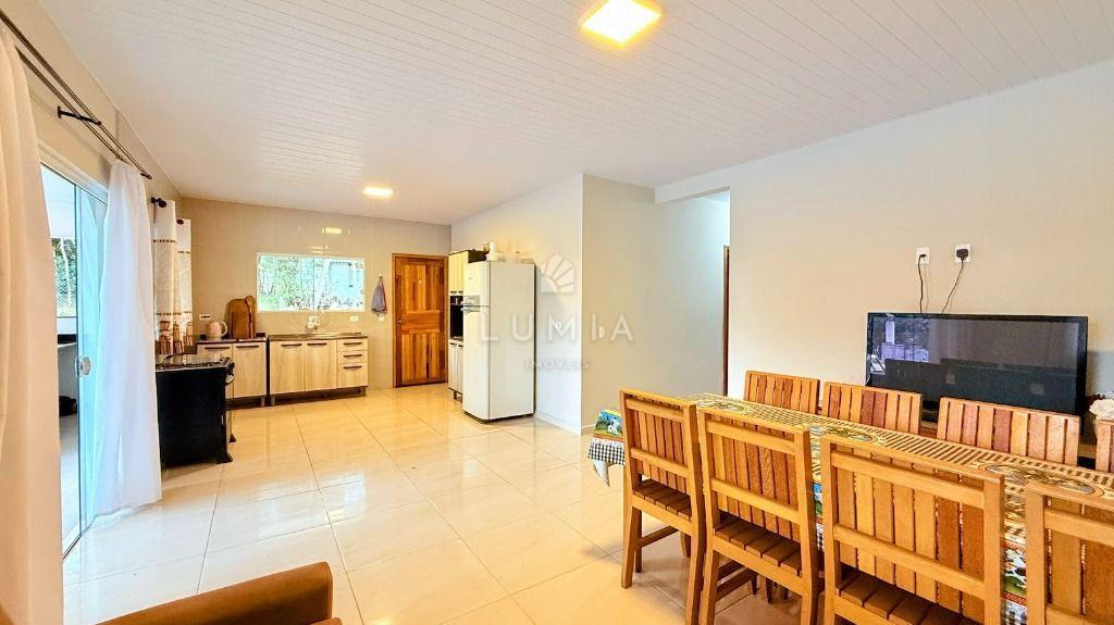 Casa em alvenaria c/ laje, toda mobiliada, bem ventilada e iluminada, confortável c/ 3 dormitórios amplos sendo um suíte, com camas, beliches e armários, sala c/ sofá, tv, cortinas, mesa com cadeiras, cozinha com pia, armário, fogão, geladeira, lavanderia com lavadora, 02 Bwc social com box e cuba, vaga de estacionamento, área Gourmet c/ mesas e cadeiras.