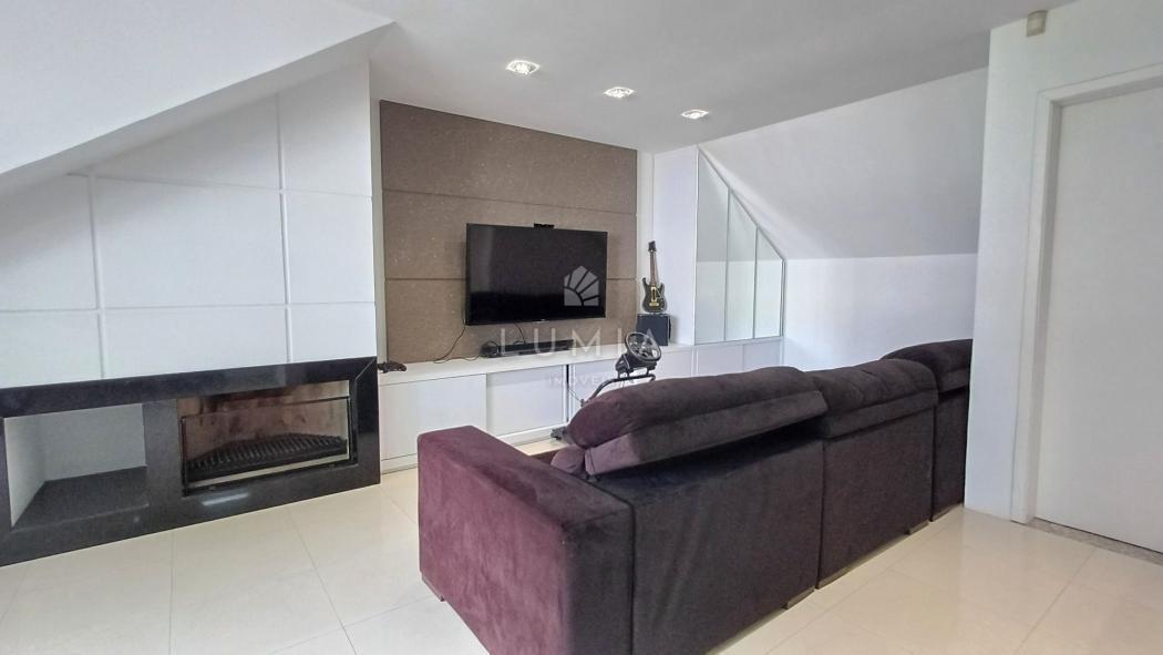 Sala de TV/cinema com lareira