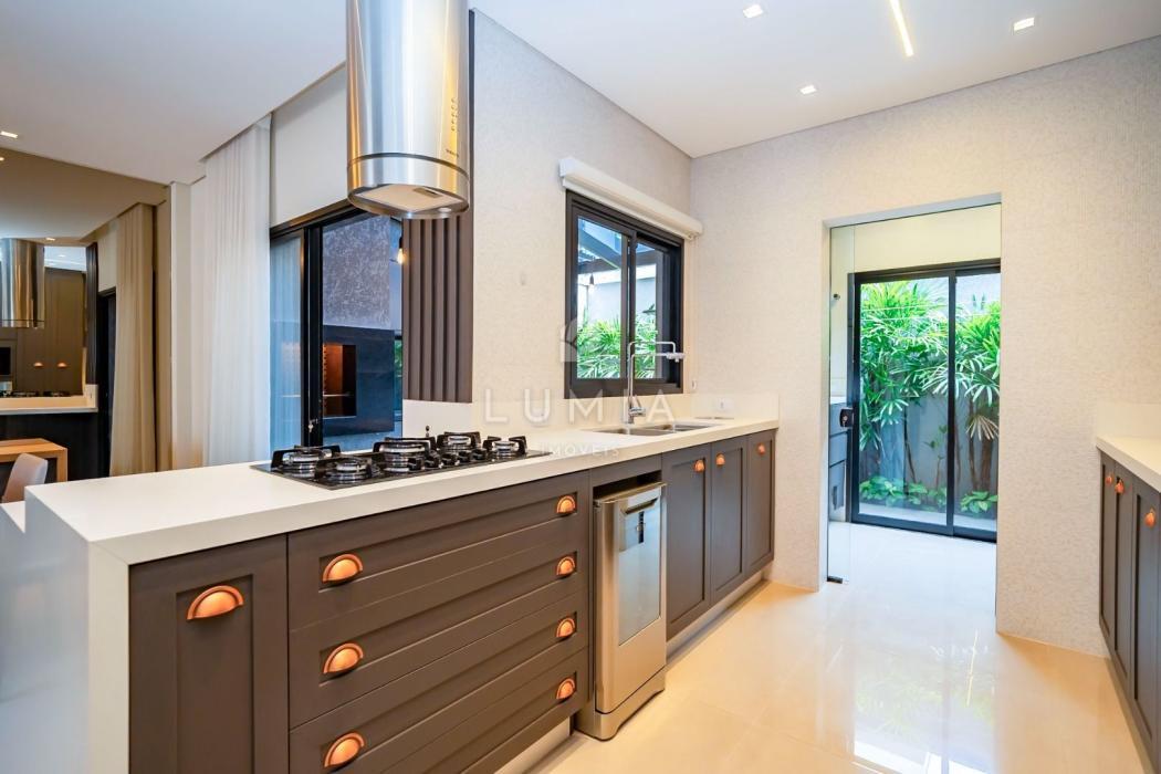 Cozinha americana integrada às áreas sociais, trazendo modernidade e funcionalidade.