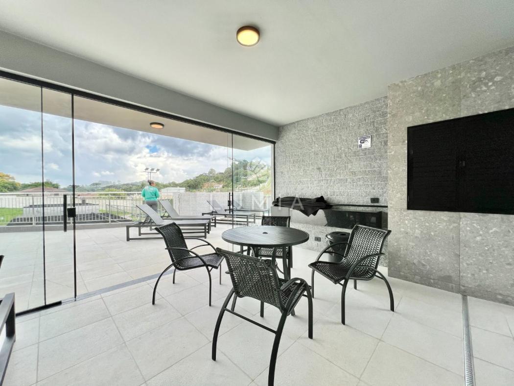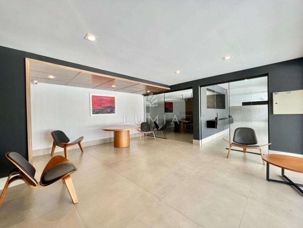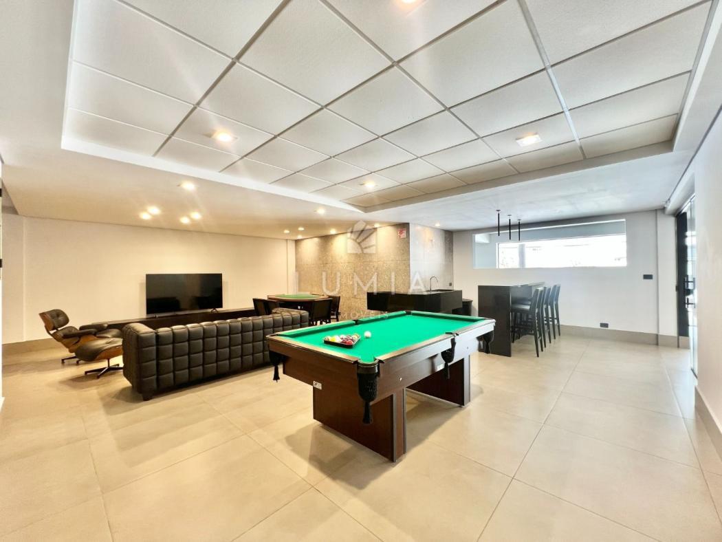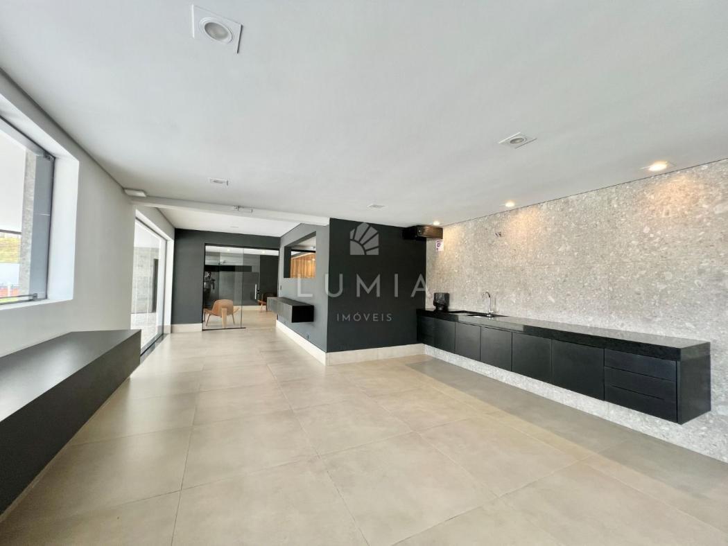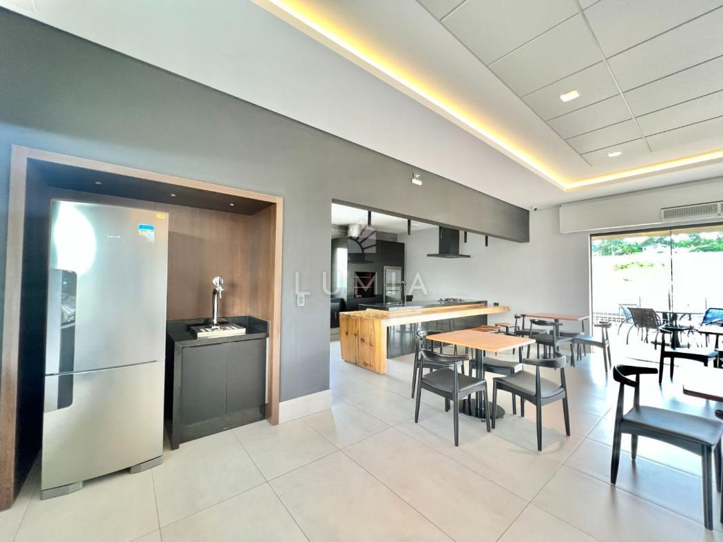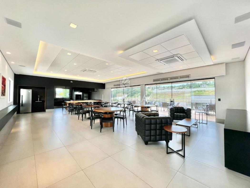 Salão de festas com espaço gourmet integrado